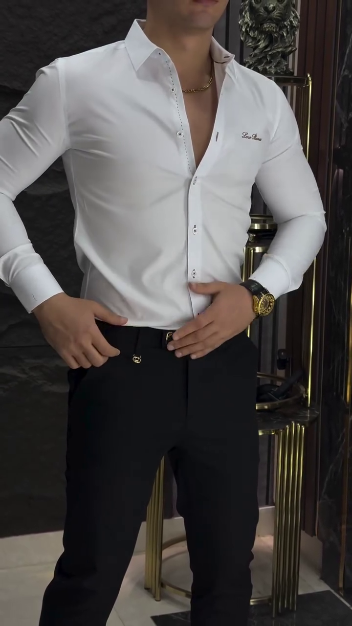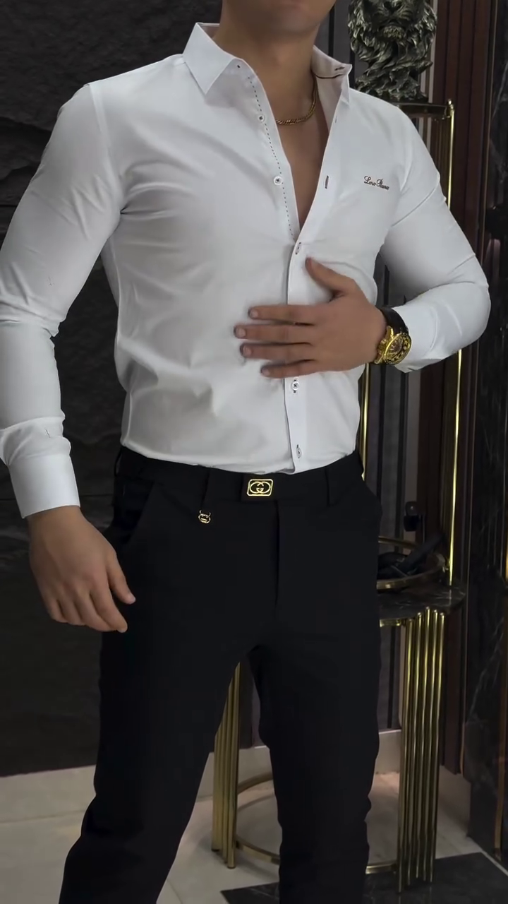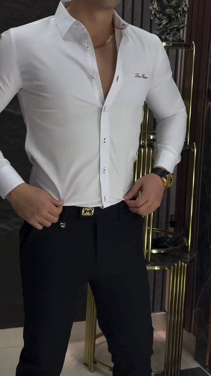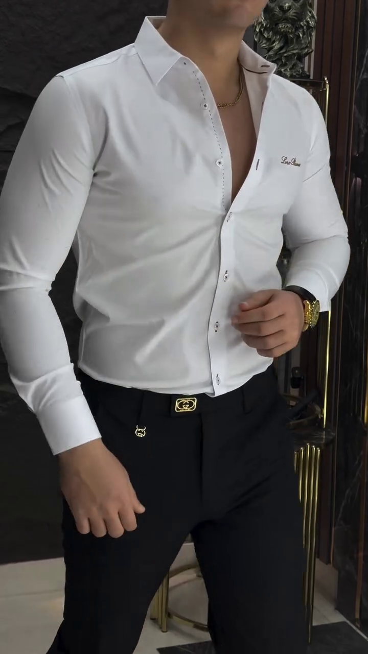 White regular Casual shirt ,has a spread collar, , na pocket, long,