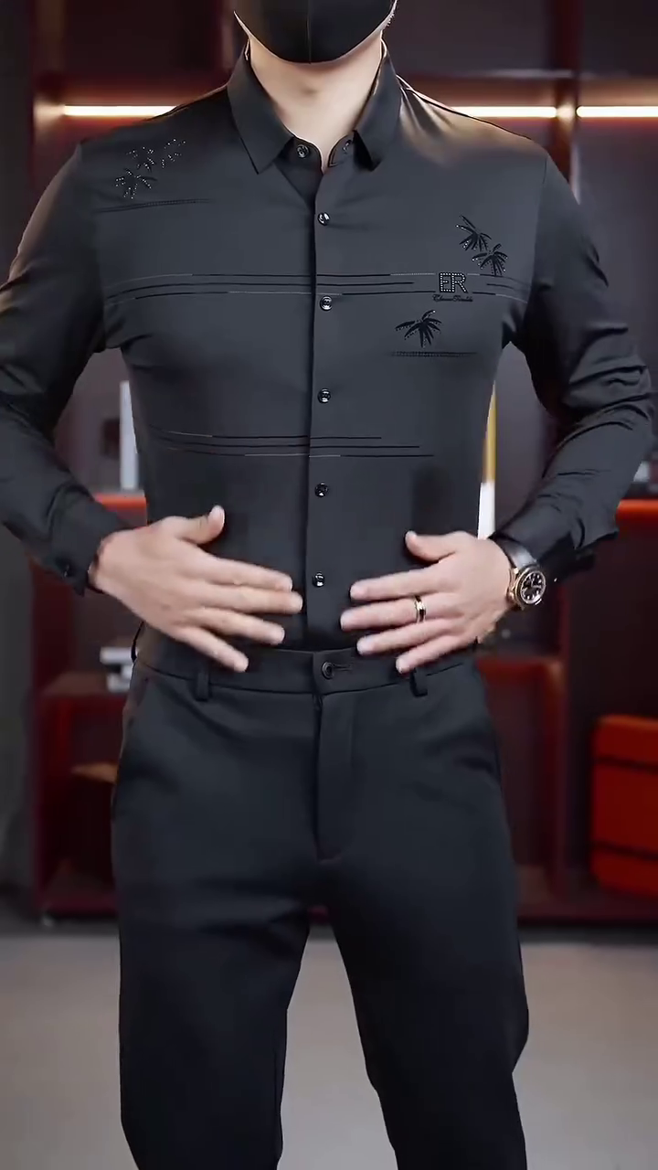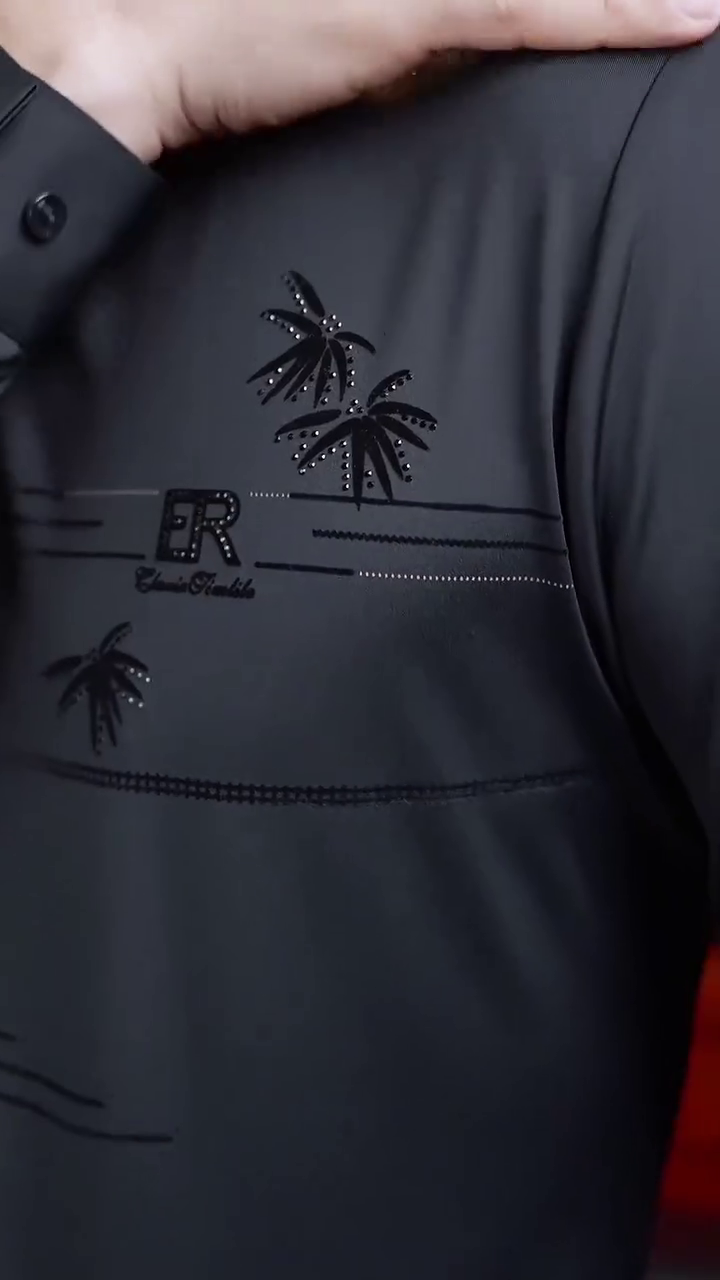 Elevate your style game with this stunning black shiny party wear shirt from our collection. Crafted with premium fabric, this designer shirt is perfect for making a statement at any formal occasion. The highlight of this shirt is the intricate diamond work on the front side, adding a touch of sophistication and elegance. Formal parties and events Weddings and receptions Corporate events and networking gatherings Special occasions like anniversaries and birthdays